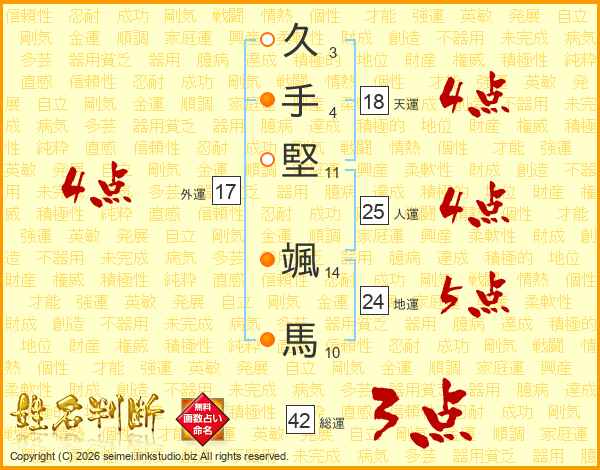 久手堅颯馬さんの人運は25画の4点!