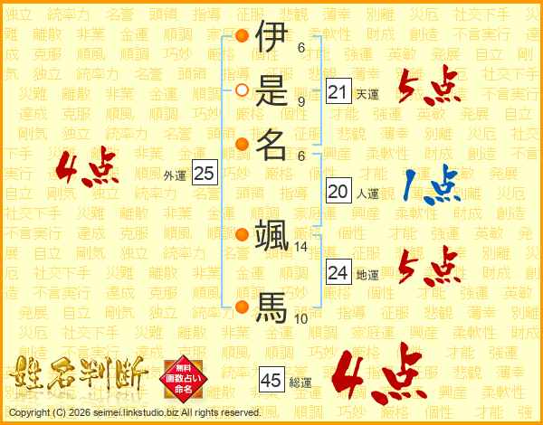 伊是名颯馬さんの総運は45画の4点!