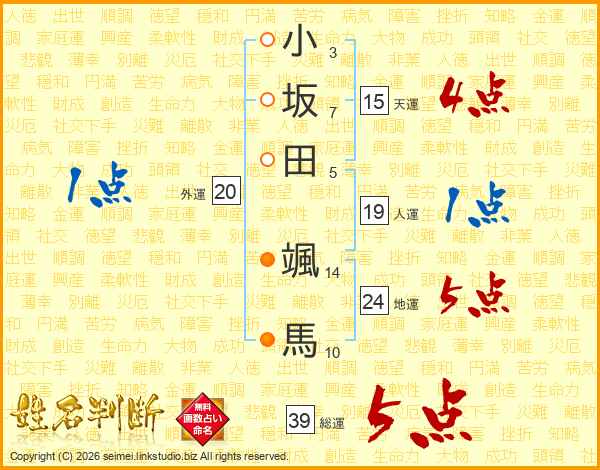 小坂田颯馬さんの総運は39画の5点!