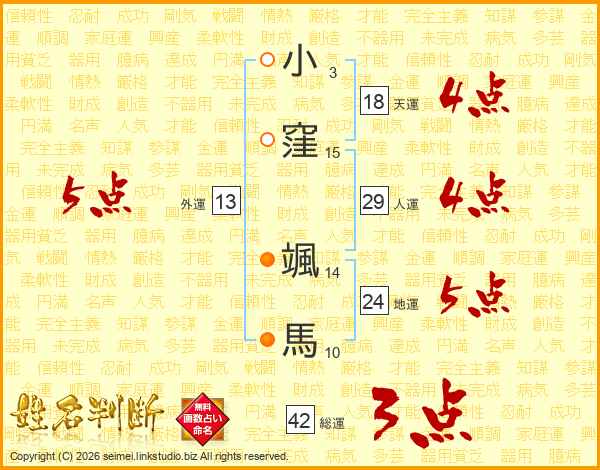 小窪颯馬さんの外運は13画の5点!