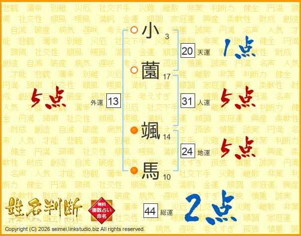 小(3画)薗(17画) 颯(14画)馬(10画)