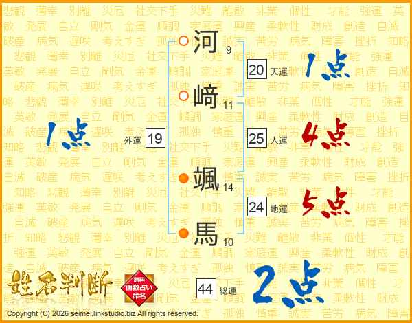 河﨑颯馬さんの総運は44画の2点!