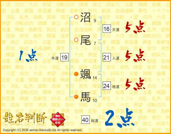 沼尾颯馬さんの地運は24画の5点!