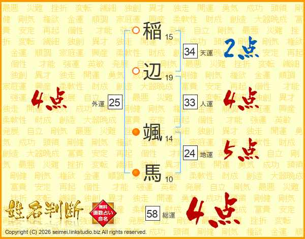 稲辺颯馬さんの総運は58画の4点!