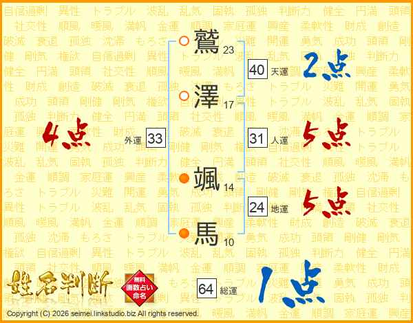 鷲澤颯馬さんの総運は64画の1点!