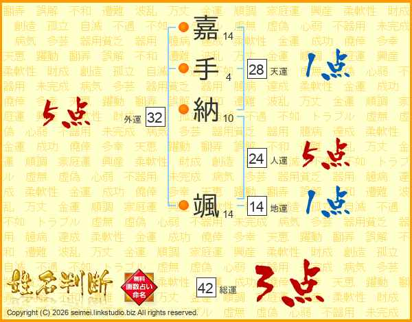 嘉手納颯さんの外運は32画の5点!