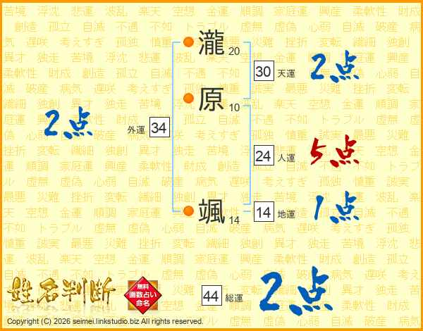 瀧原颯さんの総運は44画の2点!