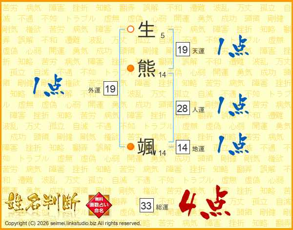 生熊颯さんの総運は33画の4点!