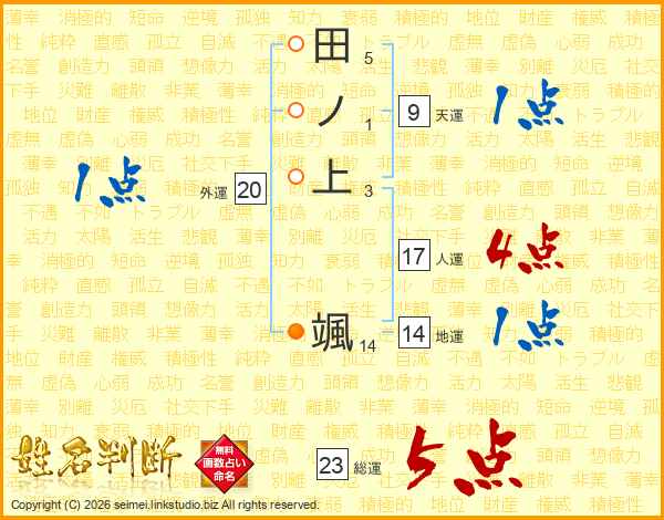 田ノ上颯さんの総運は23画の5点!