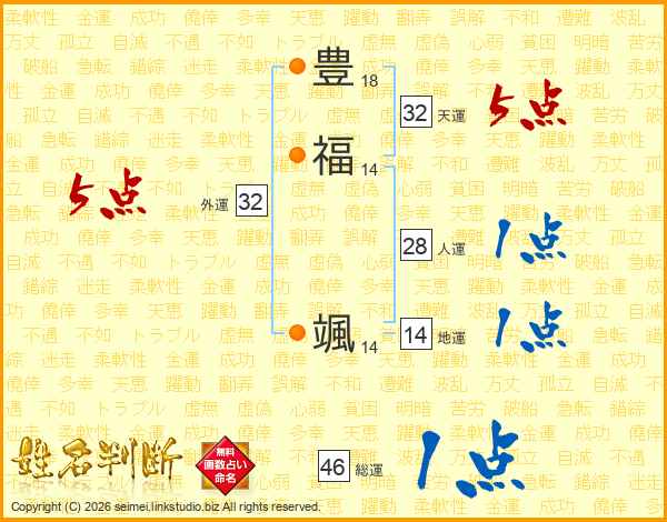 豊福颯さんの総運は46画の1点!