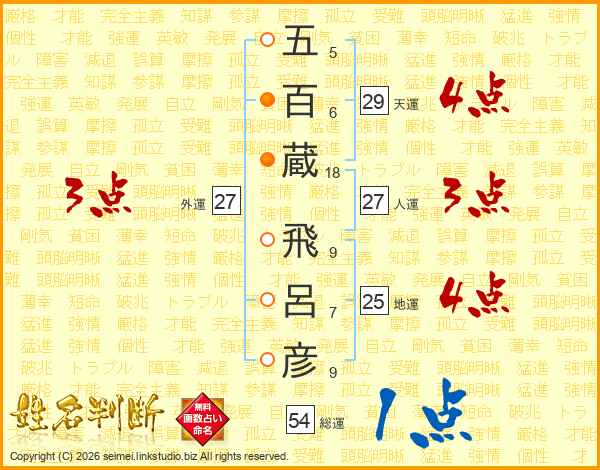 五百蔵飛呂彦さんの外運は27画の3点!