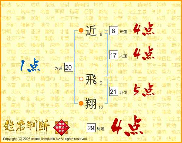 近飛翔さんの総運は29画の4点!