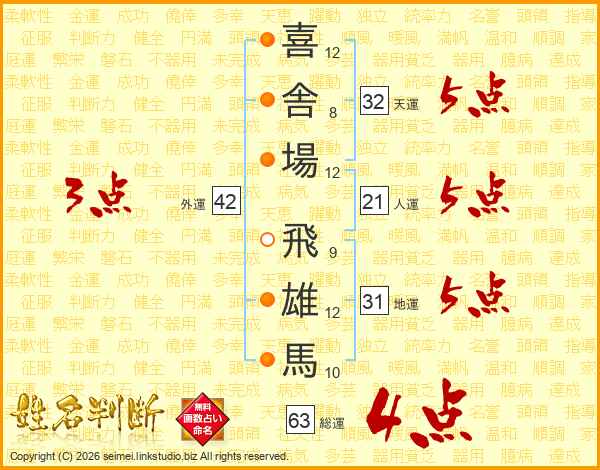 喜舎場飛雄馬さんの総運は63画の4点!