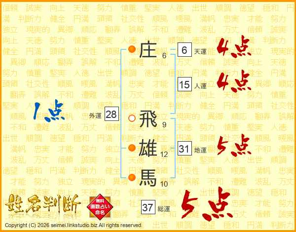 庄(6画) 飛(9画)雄(12画)馬(10画)