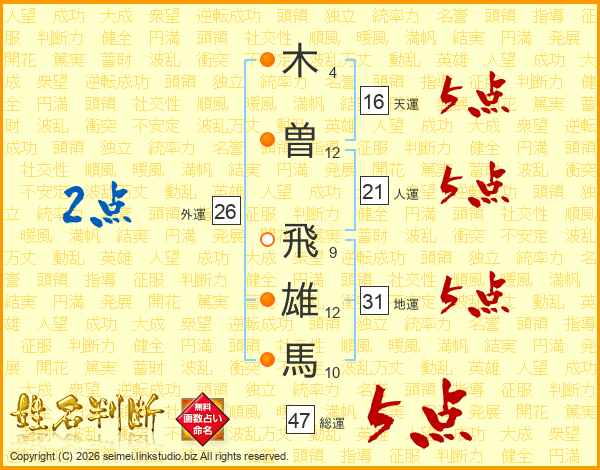 木曽飛雄馬さんの総運は47画の5点!