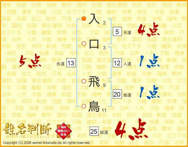 入口飛鳥さんの総運は25画の4点!
