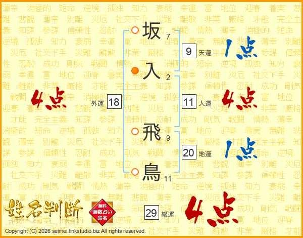 坂入飛鳥さんの総運は29画の4点!