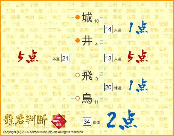 城(10画)井(4画) 飛(9画)鳥(11画)