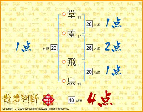 堂(11画)薗(17画) 飛(9画)鳥(11画)