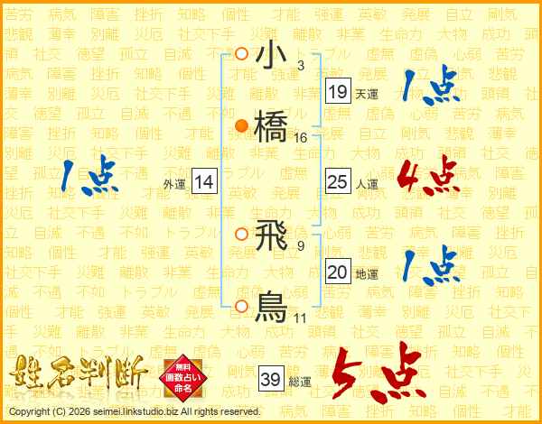 小(3画)橋(16画) 飛(9画)鳥(11画)