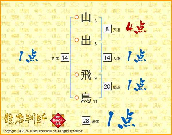 山出飛鳥さんの人運は14画の1点!