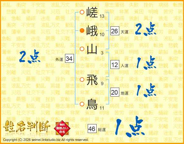 嵯峨山飛鳥さんの総運は46画の1点!