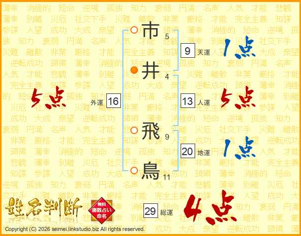 市井飛鳥さんの総運は29画の4点!