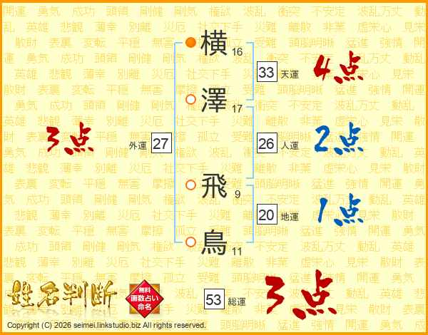 横澤飛鳥さんの総運は53画の3点!