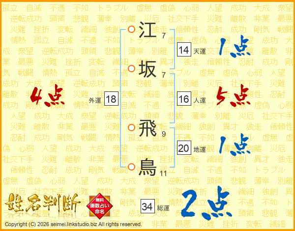 江(7画)坂(7画) 飛(9画)鳥(11画)
