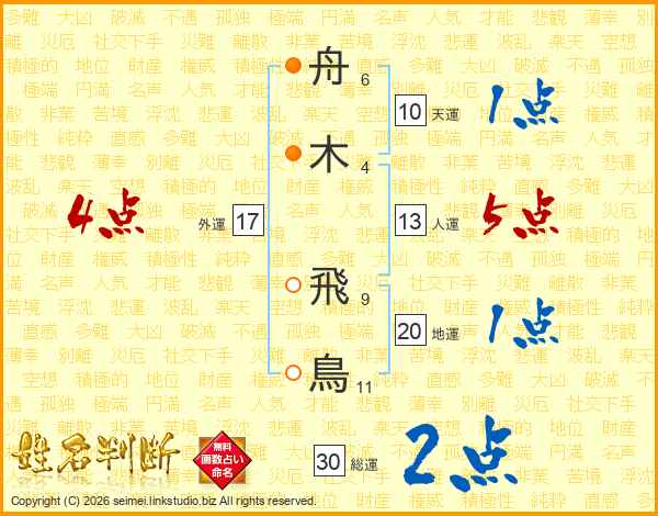 舟木飛鳥さんの外運は17画の4点!