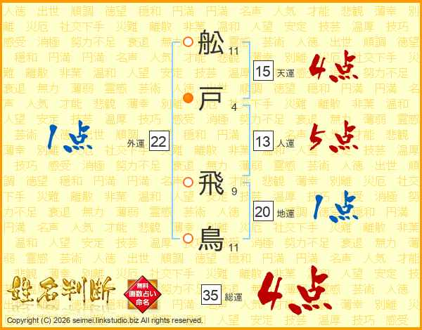 舩戸飛鳥さんの総運は35画の4点!