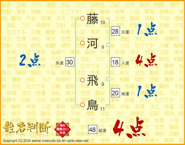 藤河飛鳥さんの総運は48画の4点!