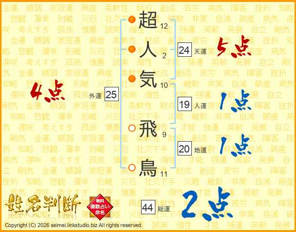 超人気飛鳥さんの総運は44画の2点!