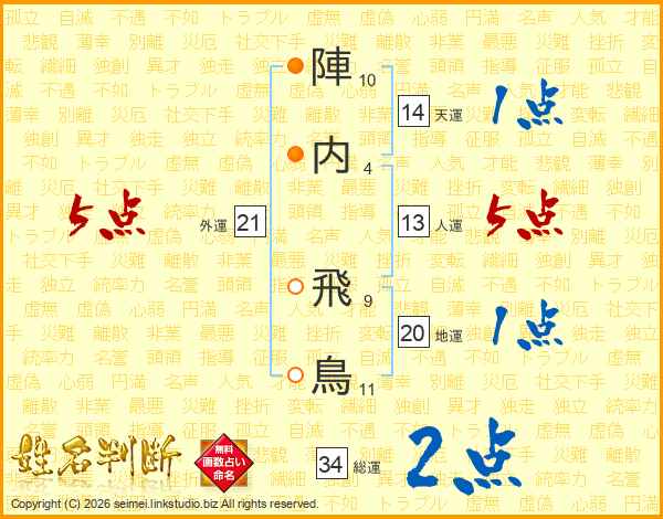 陣内飛鳥さんの外運は21画の5点!