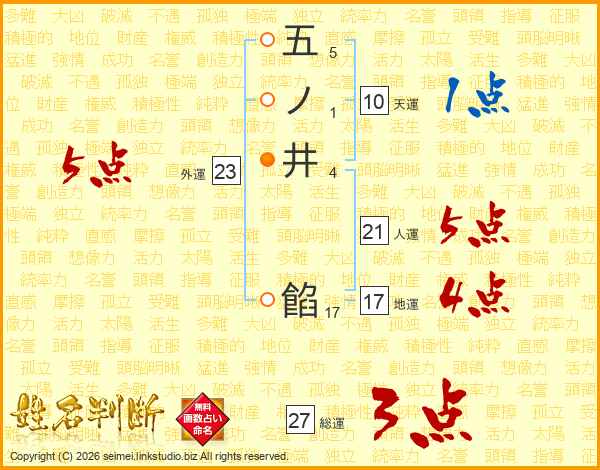 五ノ井餡さんの総運は27画の3点!