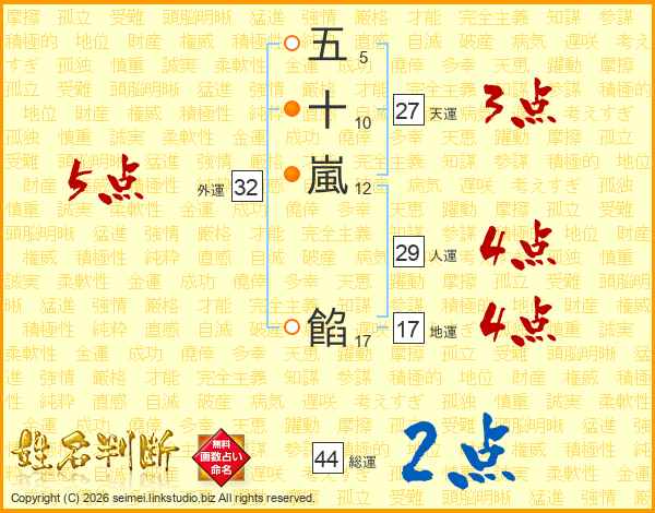 五十嵐餡さんの総運は44画の2点!