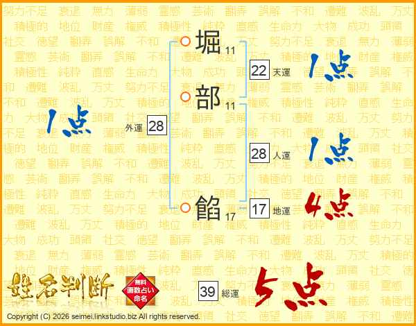 堀部餡さんの総運は39画の5点!