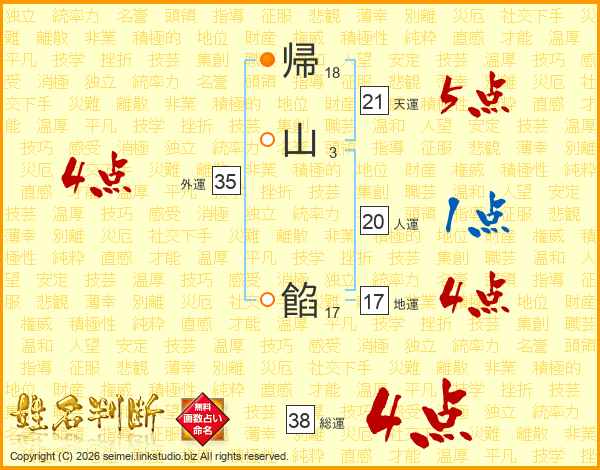 帰山餡さんの総運は38画の4点!