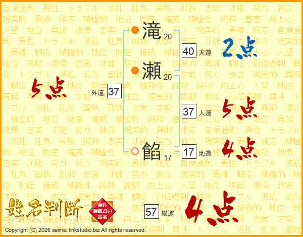 滝瀬餡さんの総運は57画の4点!
