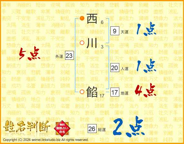 西川餡さんの総運は26画の2点!