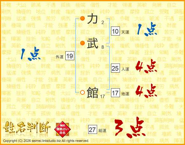 力武館さんの総運は27画の3点!