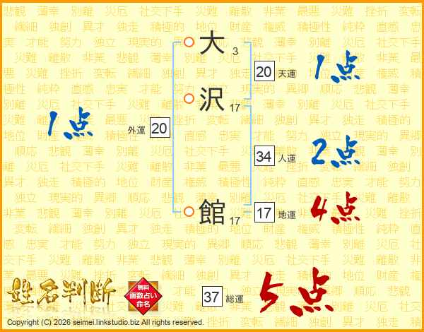 大沢館さんの総運は37画の5点!