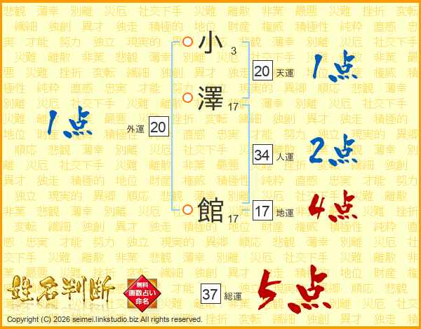 小澤館さんの人運は34画の2点!