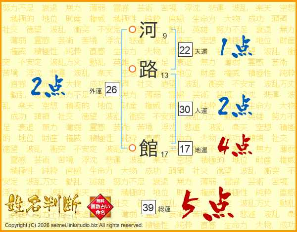 河路館さんの総運は39画の5点!