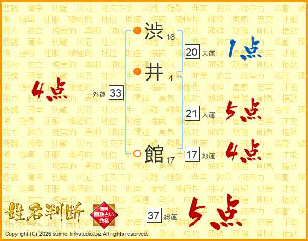 渋井館さんの人運は21画の5点!