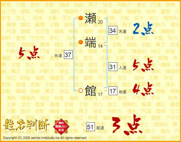 瀬端館さんの総運は51画の3点!