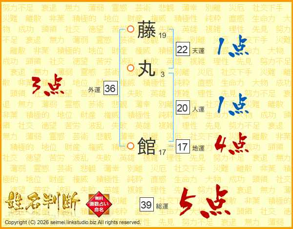 藤丸館さんの総運は39画の5点!