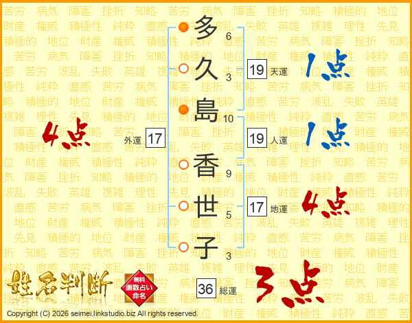 多久島香世子さんの外運は17画の4点!