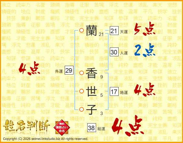 蘭香世子さんの総運は38画の4点!