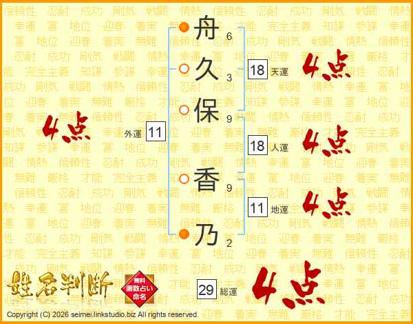 舟久保香乃さんの総運は29画の4点!